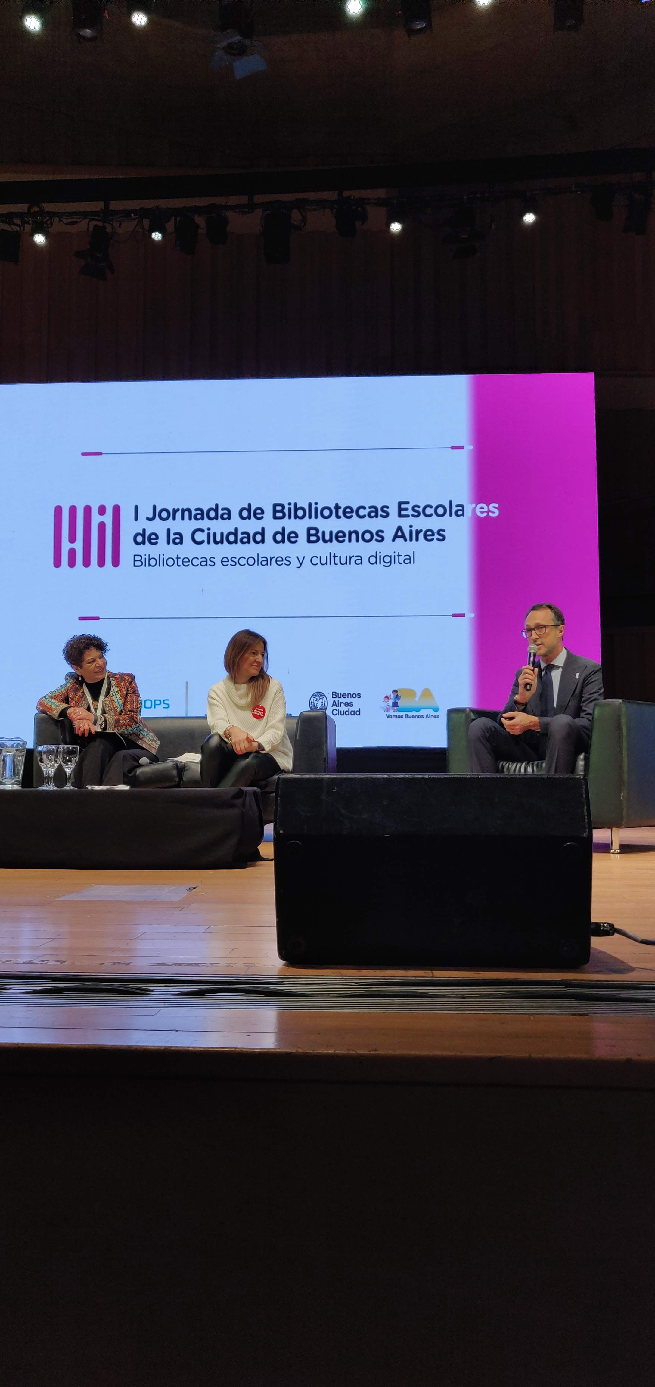 The event was initiated by the Buenos Aires Ministry of Education and Innovation who reached out to UNESCO in Montevideo, Uruguay and the International Federation of Libraries Association (IFLA) for help to find international presenters. UNESCO represents the areas of science, education and culture for the United Nations.  Working on the key tenets in education and technology for their global Sustainable Development Goals for 2030, this event aimed to show how developing school libraries as the conduit for these goals could have real impact on global literacy and digital fluency. Thatโ€™s where I come in. Through my volunteer work in school libraries, I met Joanne Plante, who is the Canadian representative on the IFLA school libraries committee.  Joanne first contacted me in August to see if Iโ€™d be interested in going with my background in school libraries and educational technology. I was immediately speaking with Stephen Weber of IFLA in Paris, and then the Urugayan branch of UNESCO to make this quickly come together. The audience is filled with stakeholders from school libraries, faculties of education, all levels of government, and university experts in library, literacy, education and digital technology.