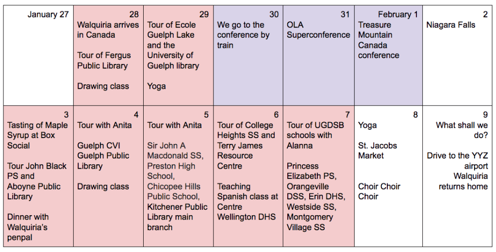 There was also an emphasis on community-building and wellness in almost every library. Each space was trying to appeal to multiple stakeholders so that everyone felt welcome. There was even a special therapy lamp in use at Guelph Collegiate Vocational Institute to help students adjust to the darkness of winter. Walquiria and I were both moved by the Ontario School Library Association keynote at Superconference by Shakil Choudhury’s presentation on “us” versus “them”. Libraries everywhere are combating these systemically discriminatory attitudes and this is a big part of making each patron and stakeholder feel like their voice is significant. Walquiria remarked: “It’s a global idea that I could easily have heard in Argentina as well. This issue is a general preoccupation for librarians in both Argentina and Canada.”